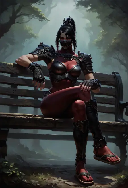 이 모델은 Soul Calibur 6의 타키 이미지로 생성되었습니다. 주요 의상은 "부분 그림자 갑옷"으로 태그되었습니다. 다른 학습된 의상은 "레드 비키니"입니다.