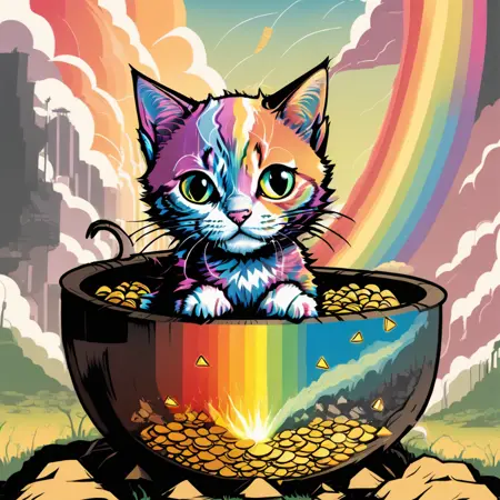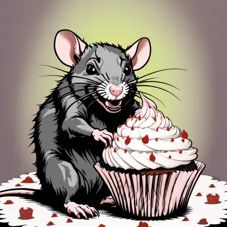 이 스타일은 아티스트 Aidan "Brute!" Hughes가 제작한 KMFDM 앨범 커버 아트에 대한 제 사랑에서 시작되었습니다. 원래 SD1.5로 훈련한 데이터셋이 정말 멋졌지만, 한계가 있었고 좀 더 다른 방향을 원했습니다. 그래서 원본 이미지에 아웃페인팅을 적용하고, 직접 디지털 페인팅을 하며 LoRA 훈련을 반복적으로 진행했습니다. Angst의 데이터셋은 Aidan의 원작 아트를 하나도 포함하지 않으며, 다양한 버전을 사용해 수정하고 생성된 반복적 결과들로만 구성되어 있습니다. 결국 이 스타일은 여전히 그의 스타일과 매우 유사하지만, 그 모든 분노와 함께 귀여운 쥐가 케이크를 먹는 모습까지도 만들어낼 수 있습니다.
