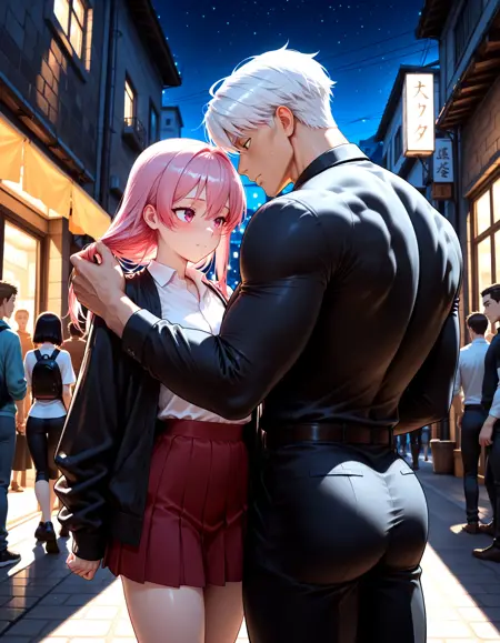 (Heterosexual,loving coupl:1.2),muscular boy with petite girl,romantic