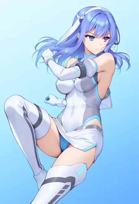 headgear,white elbow gloves,leotard,miniskirt,thigh boots,