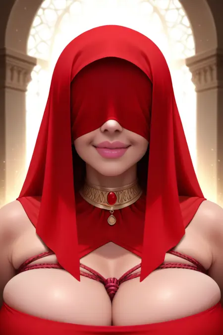 detailed background,,nsfw,smile,bondage hood, covered face, covered eyes, skintight, tight_clothing, upper body, eyeless, eyes covered, jewelry, glossy plump lips, blue choker, huge bimbo lips, leashed,half mask,masked,Eyes_covered,Face_covered, EYEMASK, COVERED EYES, full face veil, skintight veil, forehead covered, head covered, eyeless, eyes covered, hairless, dark red lips,eye veil