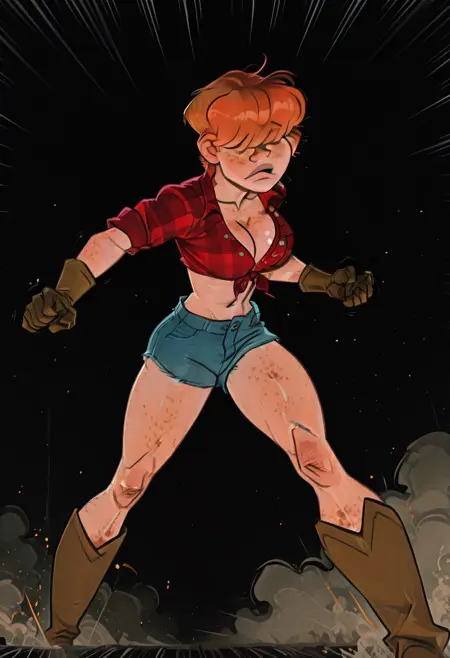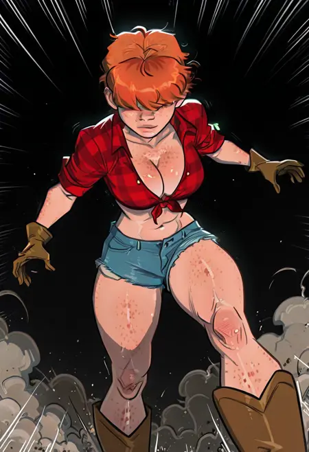 stickymoncomixxx에서 나온 농촌 출신 레드넥 소녀 줘버그를 생성합니다.