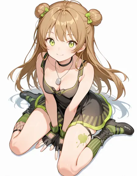 RFBdef, 片側非対称の脚衣, 片方のフィッシュネットソックス, def_jacket, def_hair_bow, def_fingerless_gloves, def_dog_tags, def_choker, def_short_dress, def_footwear, 水平縞の右ソックス, 垂直縞の左ソックス, def_socks