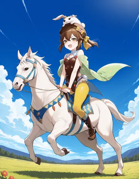 그녀의 전형적인 외모를 위해 "hair ribbon,cape,breastplate,dress,bracelet,belt,boots"를 추가하세요.