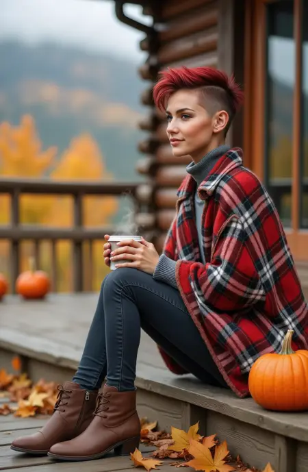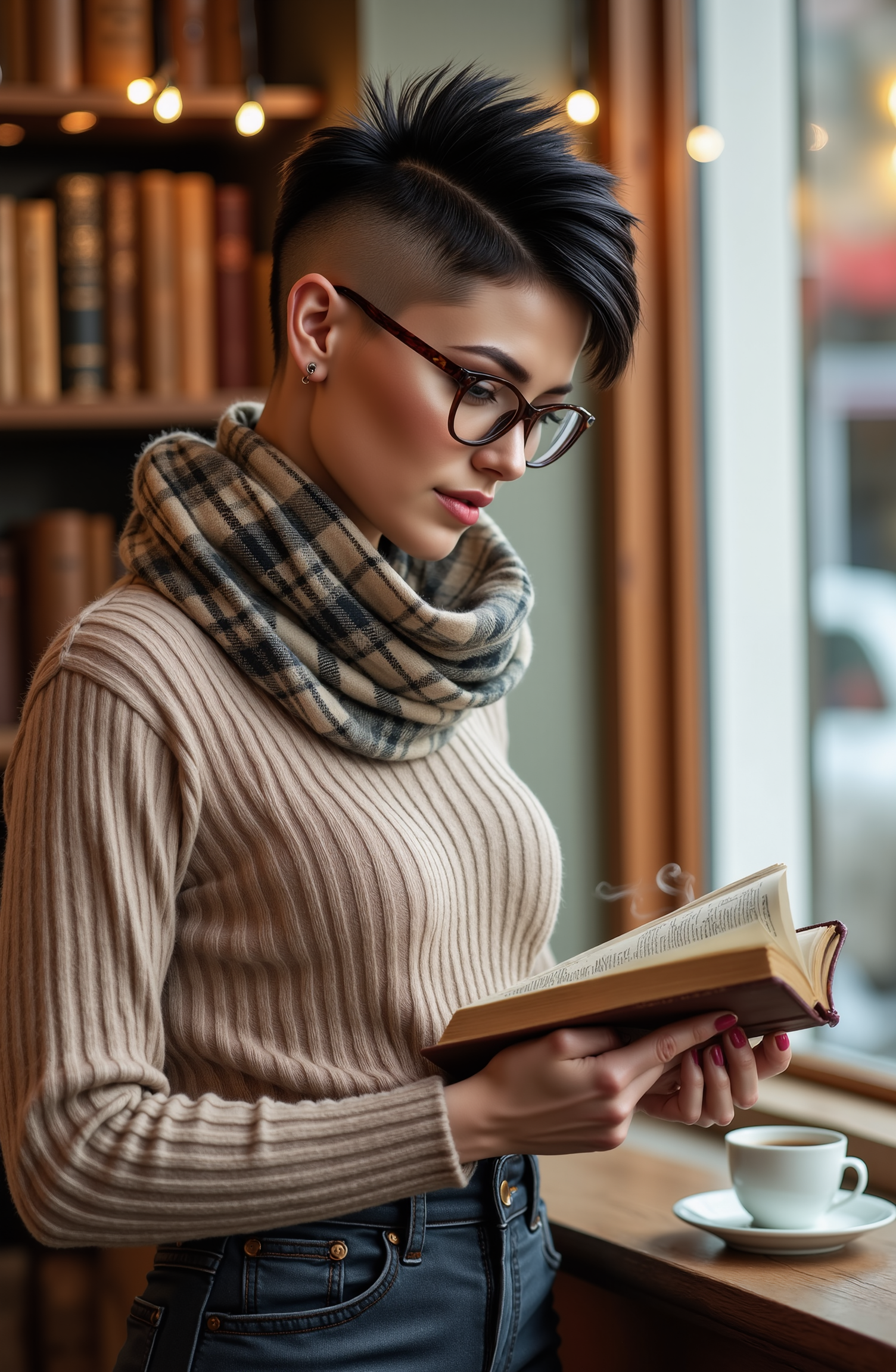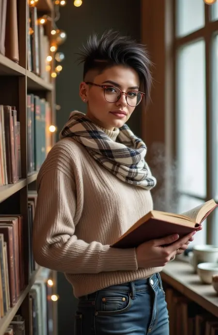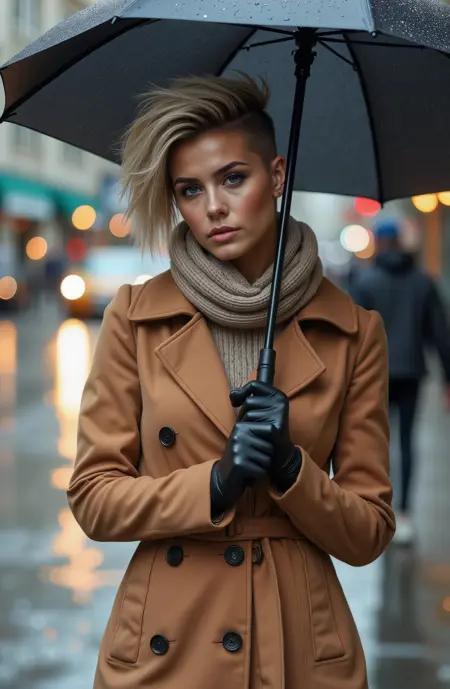 haist005 时尚前卫的 undercut 短发。两侧剃得贴近头皮,顶部留长,打造蓬松、有纹理的波浪造型。深棕色发丝带有微妙的高光。