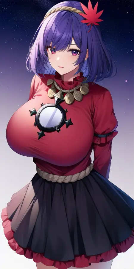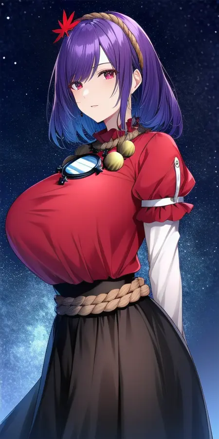 如果你仅使用 Kanako 触发词(yasakakanako),她看起来会有点普通,最好搭配 rope_belt、rope_necklace、mirror 或 leaf_hair_ornament,以最大程度保留她的 Kanako 特征。
