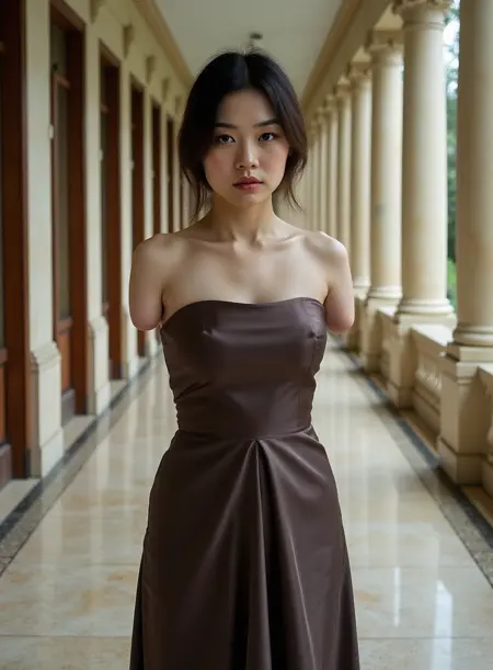 所有示例图像均使用最简化的Flux ComfyUI工作流,以flux-dev为基础,未加载任何其他LoRA。参数设置为:20步、Euler采样器、提示词引导强度2.5–3.0、LoRA权重1.0。所有图像均包含“armless amputee”或“double above elbow arm amputee”字样。
