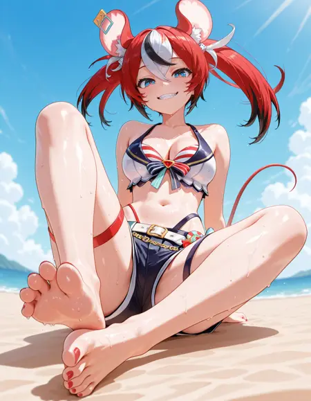 baesummer, 双马尾, 肚脐, 暴露胸部, 骰子发饰, 裸露肩膀, 长发, 大腿绑带, 短裤, 高腰比基尼, hololive 2023夏季泳装,
