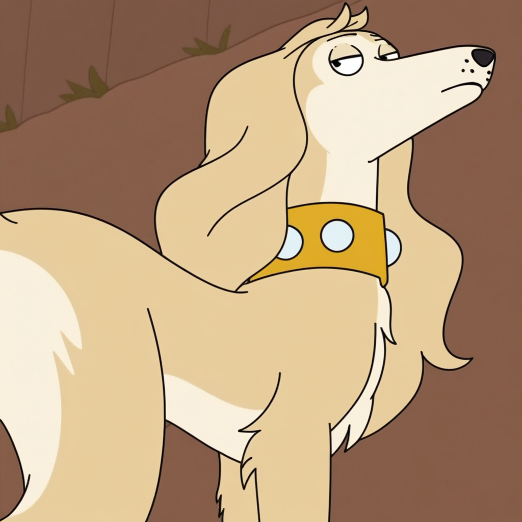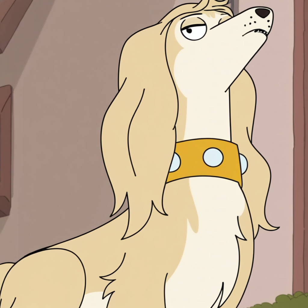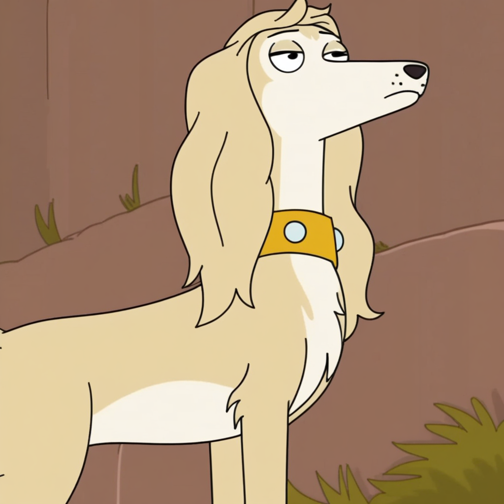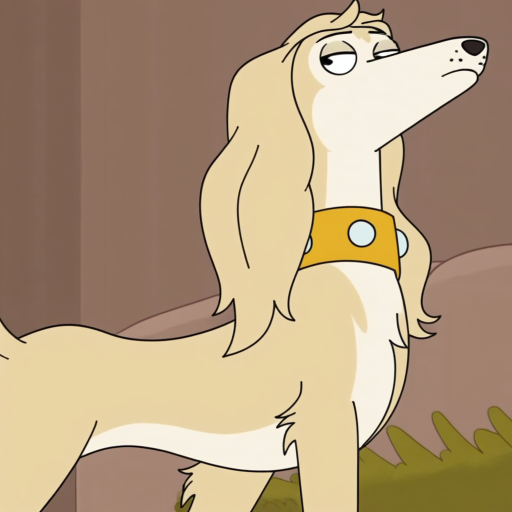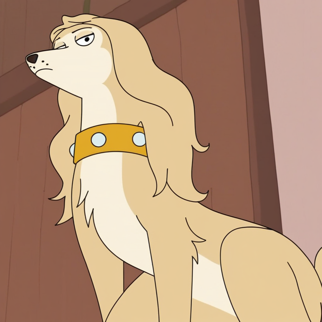 프롬프트: 금발의 슬러티 사루키, 야생, 단독, 노란색 목줄,
