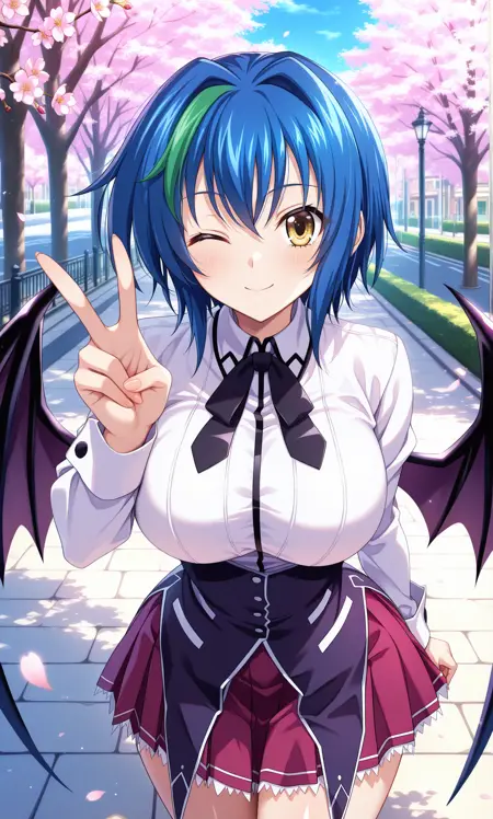 제노비아 쿼르타, 노란 눈, 파란 머리, 단발, 줄무늬 머리