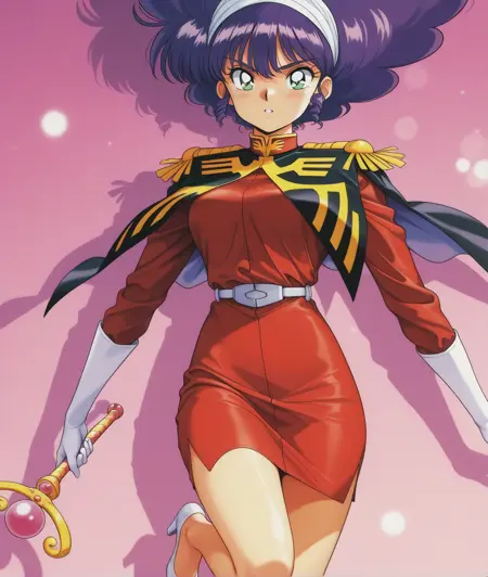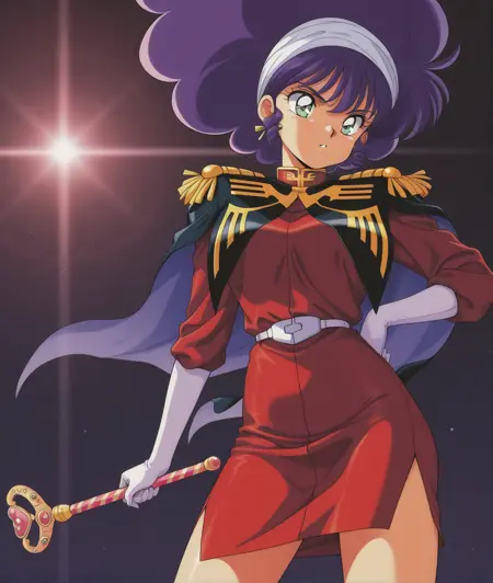 ジオン第6小学校に通うマリコ・スターマインが、赤い彗星の者からもらった魔法の布団たたきで変身した姿。