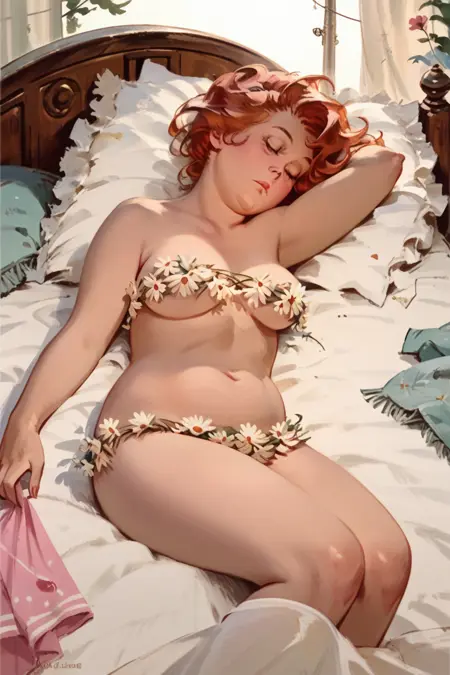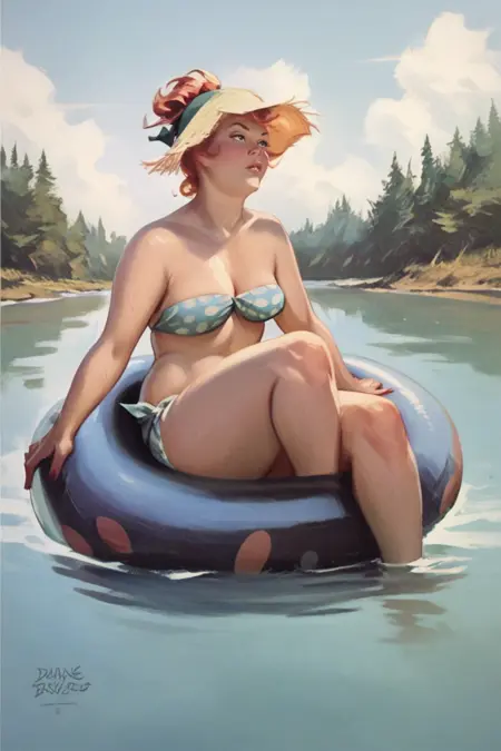 此LoRA有助于重现由杜安·“迪克”·布莱尔斯创作的希尔达角色的美女海报风格和外观。希尔达是一位非传统的丰满红发女性,自20世纪50年代中期起出现在日历上。