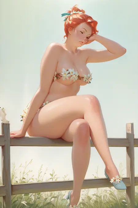此LoRA有助于重现由杜安·“迪克”·布莱尔斯创作的希尔达角色的美女海报风格和外观。希尔达是一位非传统的丰满红发女性,自20世纪50年代中期起出现在日历上。