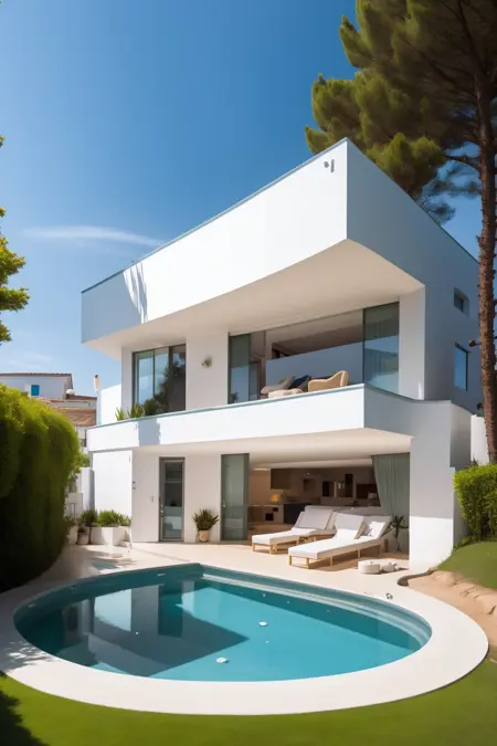 このLORAは、白い建物をリアルな建築シーンとして描くことを目的としています。