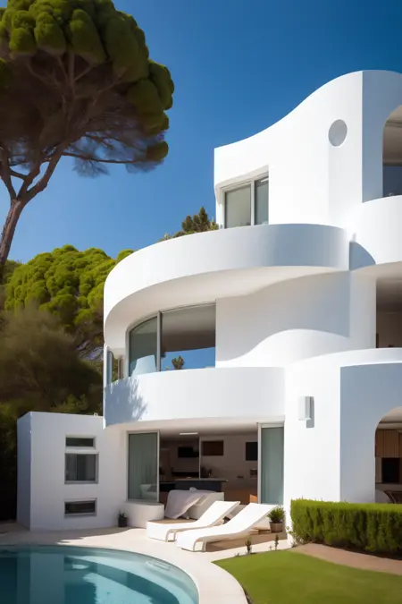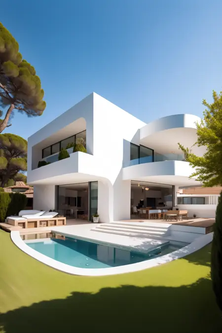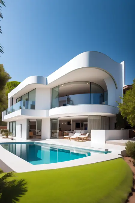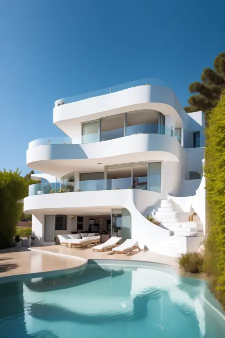 이 LORA는 흰색 건물을 묘사하여 실제 건축 풍경을 보여주기 위해 설계되었습니다.
