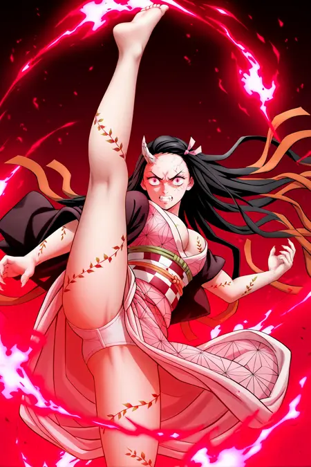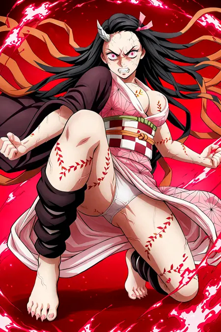 张开嘴,愤怒,血红色气场,强大的姿态,爪子伸展,锋利的獠牙,开裂的皮肤,锋利的指甲,粉红色的眼睛,血管,竖瞳,