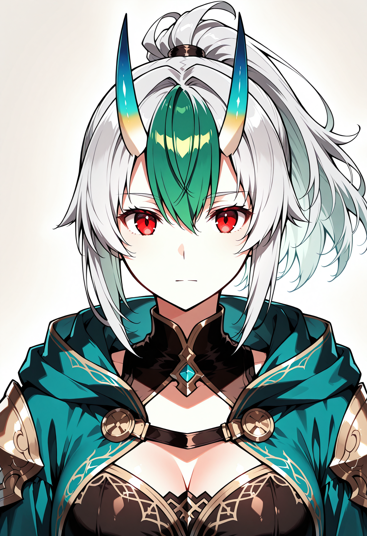 wrathfemkumodesu, 꼬리머리, 옴니 뿔, 파란 뿔, 다채로운 머리카락