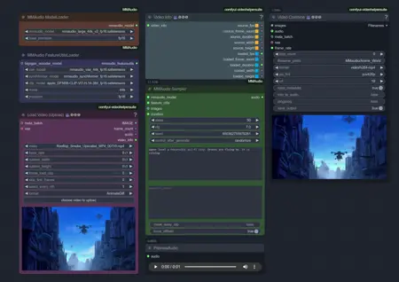 This workflow is a slight modification of kijai's example workflow you can find here: https://github.com/kijai/ComfyUI-MMAudio