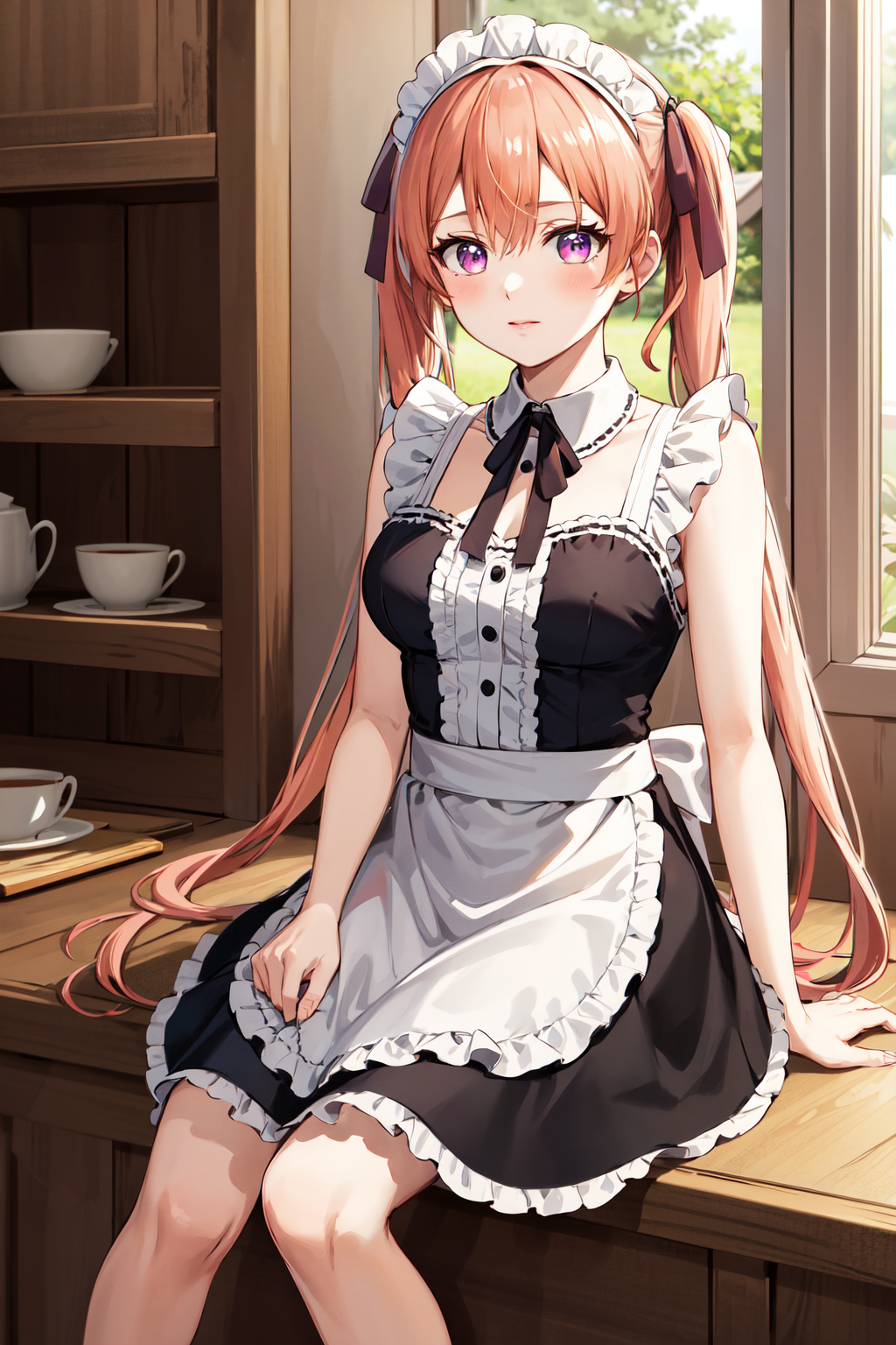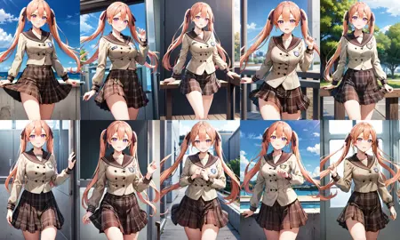 aaerika, 长发, 双马尾, 发带, 校服, 塞拉夫克, 水手领, 长袖, 格子裙, 棕色裙子