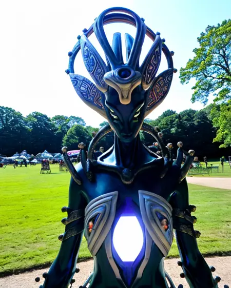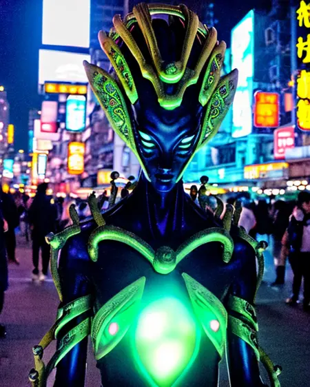 创建艾科尼亚人,这是《星际迷航》中提及并在游戏《星际迷航在线》中出现的种族。他们拥有水晶皮肤、六只眼睛,以及三指的手。关键词为 iconian。有助于生成其外观的其他词:外星人、水晶皮肤、六只眼睛、尖刺头部、身穿金属盔甲、佩戴尖刺金属头饰、发光胸部、纤细。如果生成显示其手部的图像,请使用标签 3-fingered hand。该模型经过 Cyberrealistic 训练。