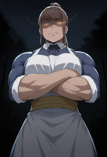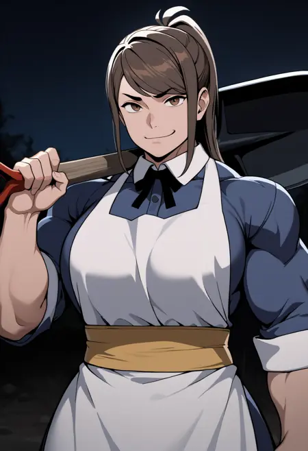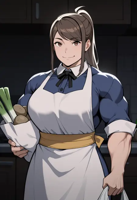 外观标签: 棕色头发,长发,高马尾,扫刘海,侧发,棕色眼睛,肌肉女性