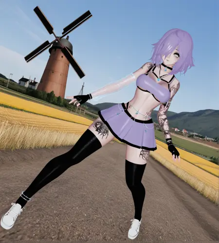 base : maddy(ori),purple hair,short hair,hair over one eye,grey eyes,Nose piercing,lip piercing,