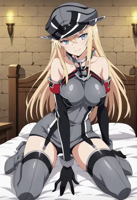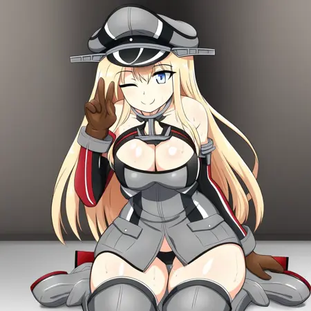 Base: Bismarck, blonde hair, long hair, blue eyes, large breasts,