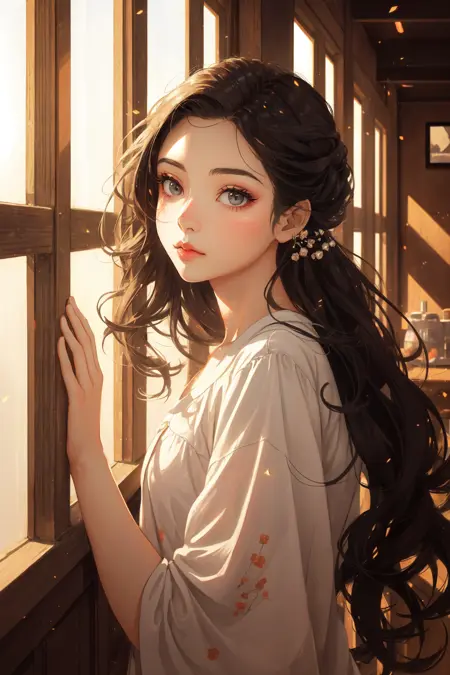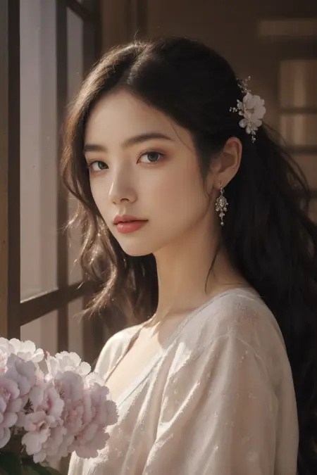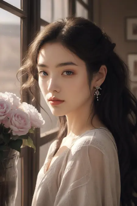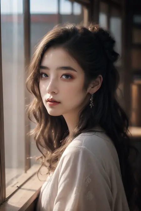 This LoRA is mainly used to generate realistic portraits. It only needs simple prompt words to generate a stable effect. The background is a wooden window, and the image presents natural and soft light and shadow shining in from the window.