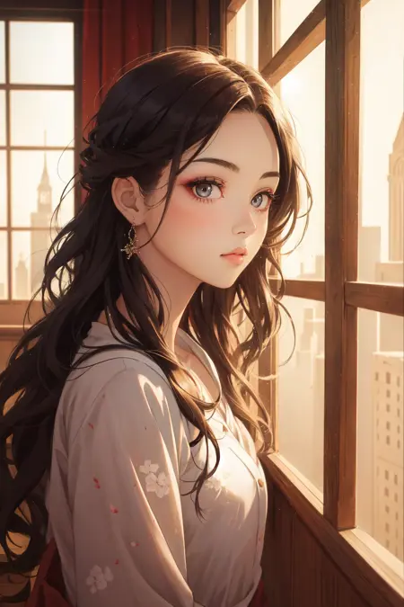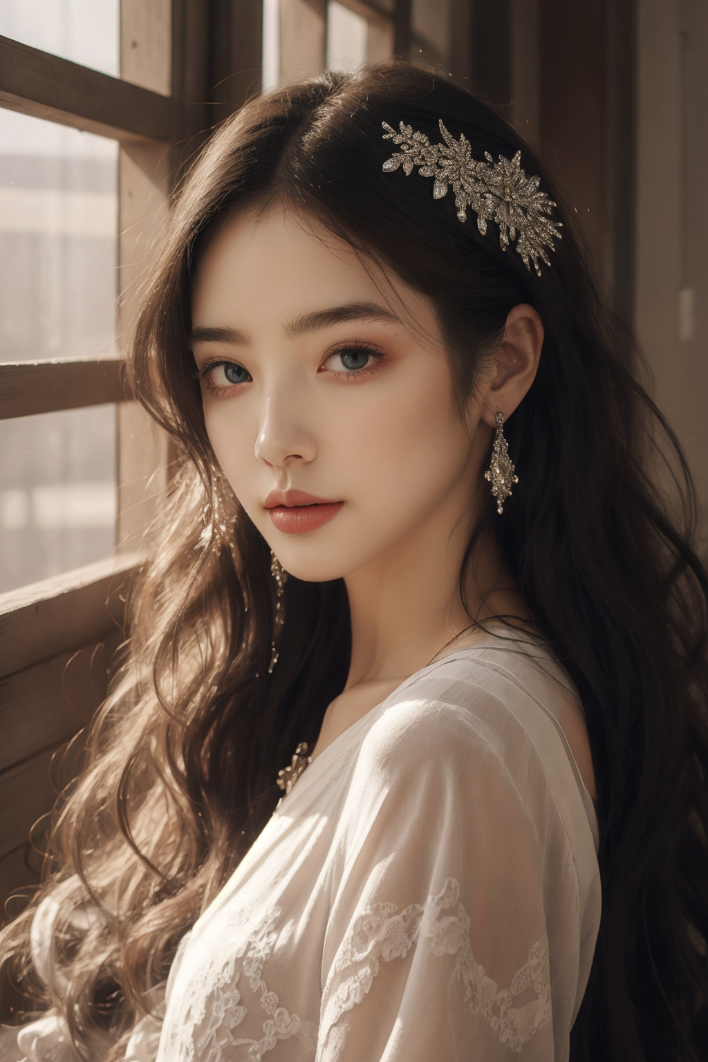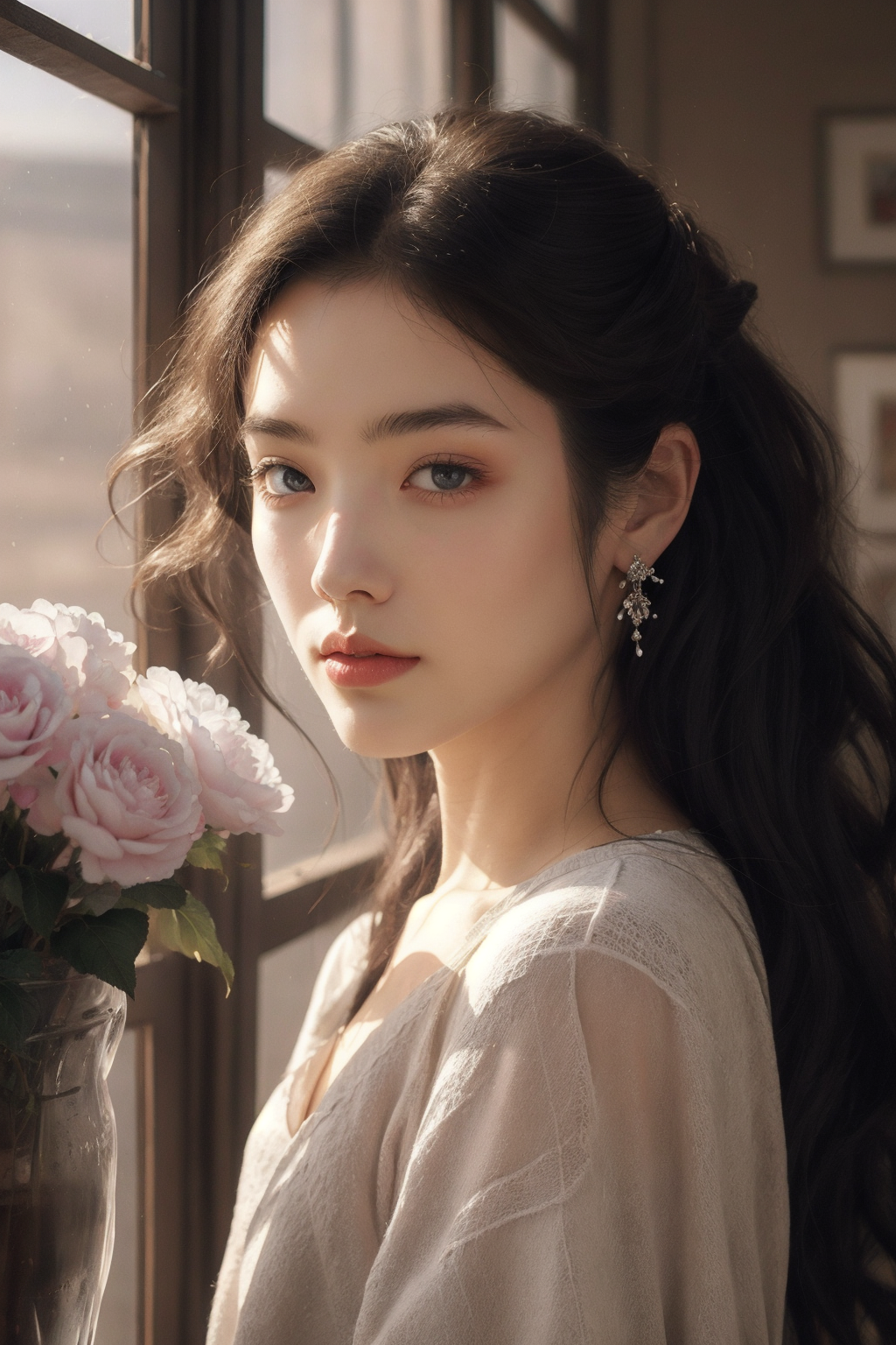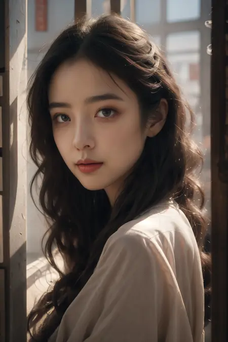 这款LoRA主要用于生成逼真的人像,只需要简单的提示词就可以生成稳定的效果,背景是传统木窗,图像中呈现从窗外照射进来的自然且柔和的光影。