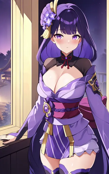 권장 프롬프트: rshogun_genshin, 1girl, solo, 보라색 눈, 땋은 꼬리, 땋음, 보라색 머리, 긴 머리, 매우 긴 머리, 큰 가슴, 흉선, 머리 장식, ((검은 어깨), (기모노), (보라색 기모노)), 보라색 가슴, 일본 복장, ((셔그 /(의상/))), (검은 (셔그 /(의상/)), 신부 장갑, 다리, 허벅지, 허벅지 긴 양말, 보라색 허벅지 긴 양말, 보라색 허벅지 긴 양말, ((계층적인 소매)), 긴 소매, (보라색 소매), 넓은 소매, 띠 <원하시면 복장의 색상을 보라색에서 분홍색으로 변경하여 더 생동감 있는 색상을 만들 수 있습니다>
