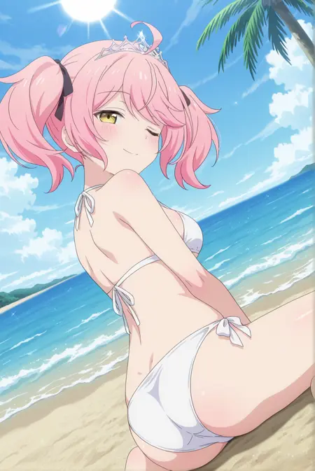 基本:philu-al、1girl、ピンクの髪、ツインテール、あほ毛、黄色い目、大きな胸