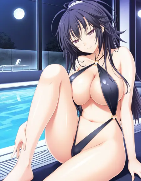 hayasaki mio, black hair, long hair, antenna hair, purple eyes