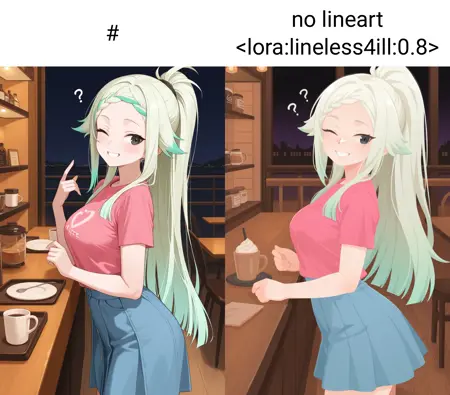スタイルのカラーリングを強化するには、ポジティブプロンプトに「no lineart」を追加してください。