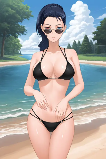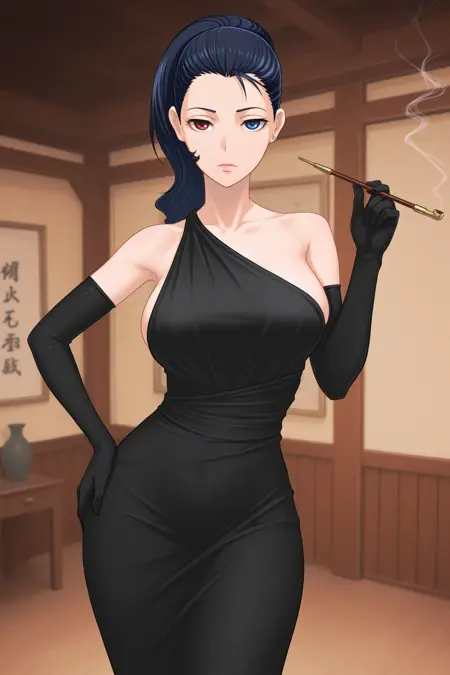 外观标签:viola,马尾辫,深蓝色头发,额头,异色瞳,红眼睛,蓝眼睛