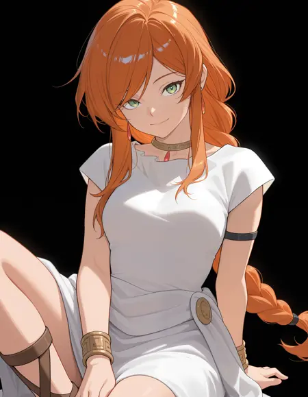 기본: fl4mme, 주황색 머리, 녹색 눈, 땋은 토들, 귀걸이