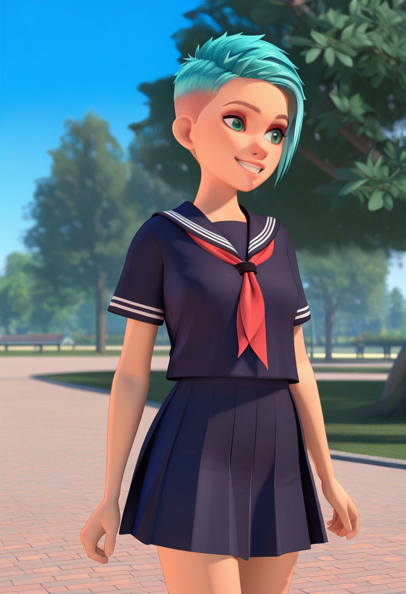 彼女のかつての障害は、LoRAには反映されていません。モデルがその特徴をトリガーに学習してしまうと生成に問題が生じる可能性があると考えたためです。もしその障害を描きたい場合は、チェックポイントに自然に生成させるか、インペイントを使用するのが最適です。