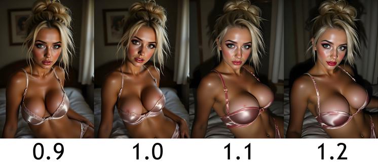 Flux 버전은 사용하는 가중치에 따라 다양한 효과를 제공합니다. 1.1 이상은 뚜렷한 단일 조명 효과를 주며, 0.6~0.9는 기본 Flux를 단순히 강화합니다.
