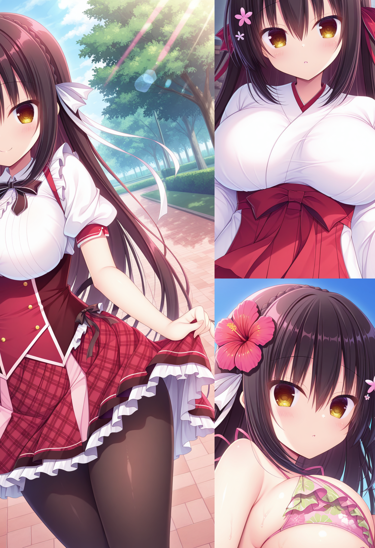Trigger words: c-kaidou, long hair, black hair, brown eyes, braid, hair ribbon, hair flower, white ribbon,