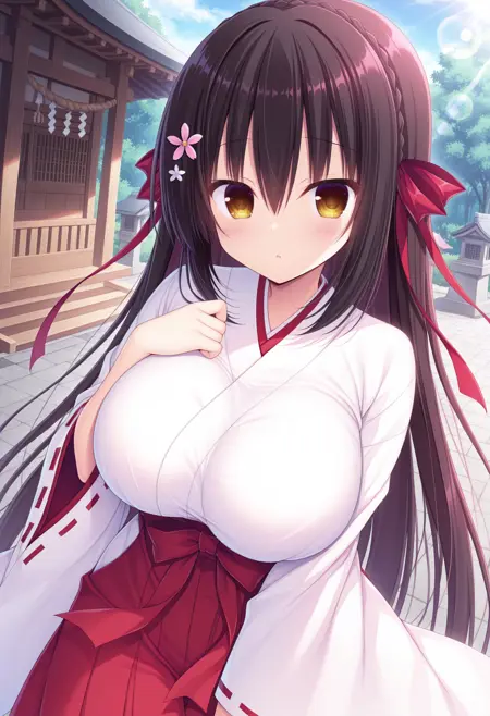トリガー語: c-kaidou, 長い髪, 黒髪, 茶色の目, 編み髪, 髪リボン, 髪の花, 白いリボン