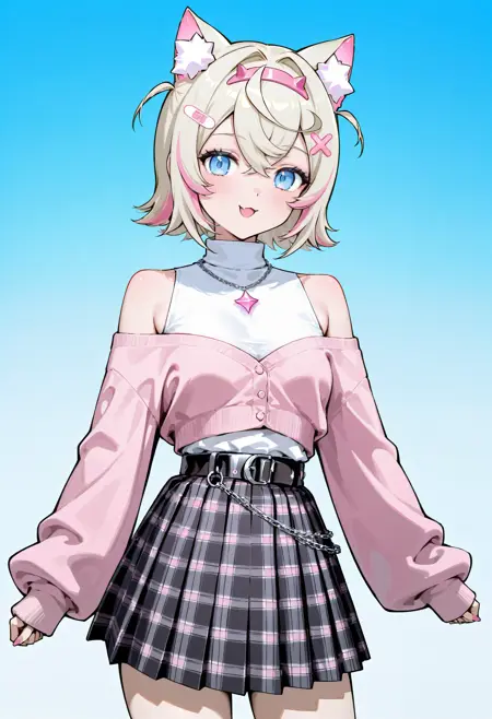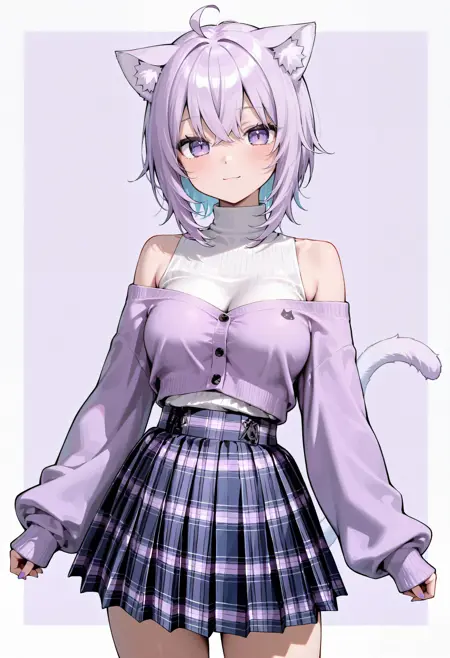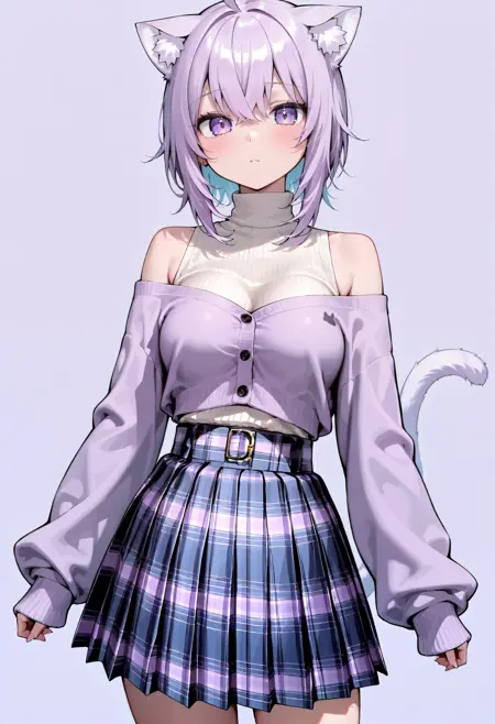 Off Shoulder Sweater, Turtleneck & Plaid Skirt