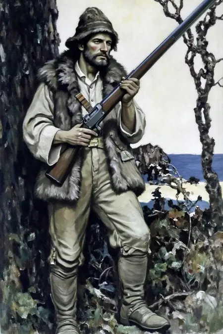 弗兰克·厄尔·舒诺弗是一位关键的美国插画家,以其戏剧性的冒险场景、历史题材和粗犷的边疆图像闻名。他是美国插画黄金时代(19世纪末至20世纪初)的领军人物,与N.C.怀斯、霍华德·派尔和哈维·邓恩等大师并肩工作。