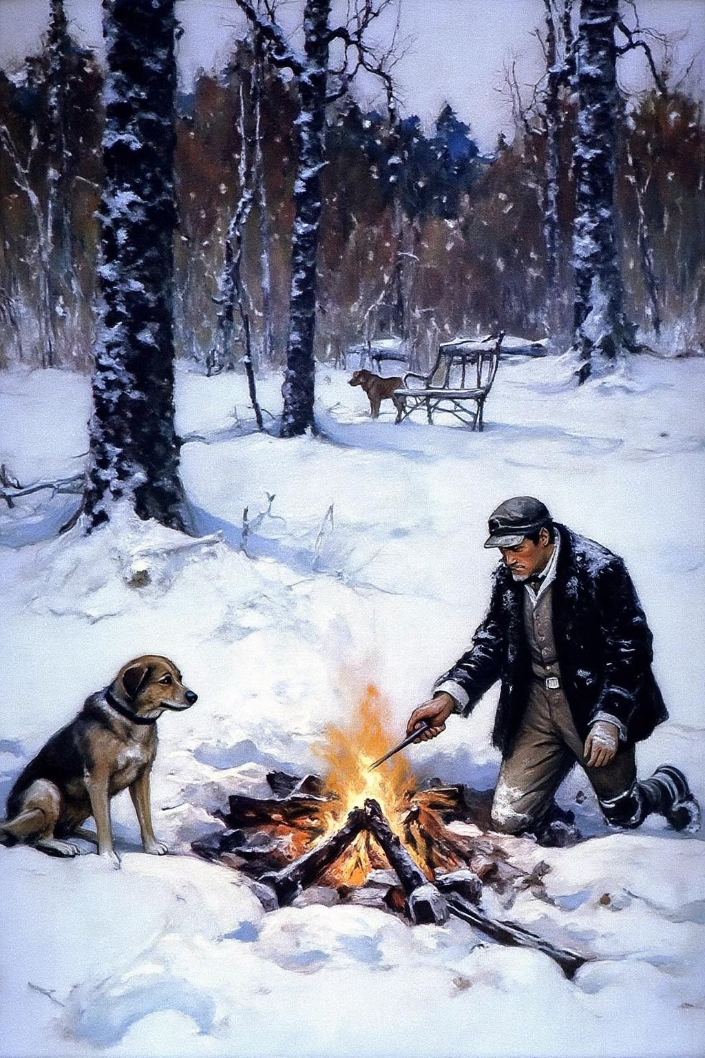我对这个LoRA的满意程度胜过派尔LoRA。这个LoRA确实捕捉到了舒诺弗的部分风格。但令我略感失望的是,即便该图像属于训练集,LoRA仍无法完美再现我最钟爱的舒诺弗插画——我最爱的杰克·伦敦短篇小说《生火》中的关键场景 😥。