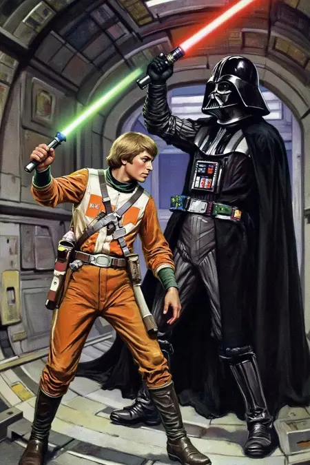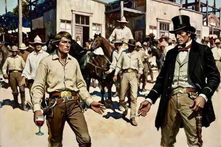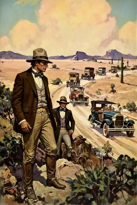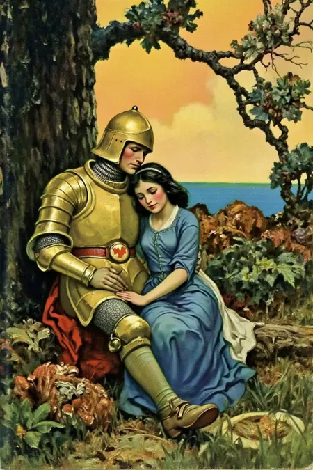 由美国插画家弗兰克·舒诺弗(1877–1972)的二十八幅画作训练而成,他是布兰迪万学派的成员,该学派由霍华德·派尔创立(两者风格的相似性绝非偶然 😁)。舒诺弗曾为多家杂志担任插画家,创作了五千多幅画作。欲欣赏他的作品,请访问: