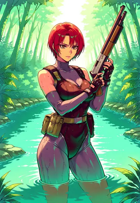 服装 - 连体紧身衣,腰带,分体袖子,无指手套,大腿枪套