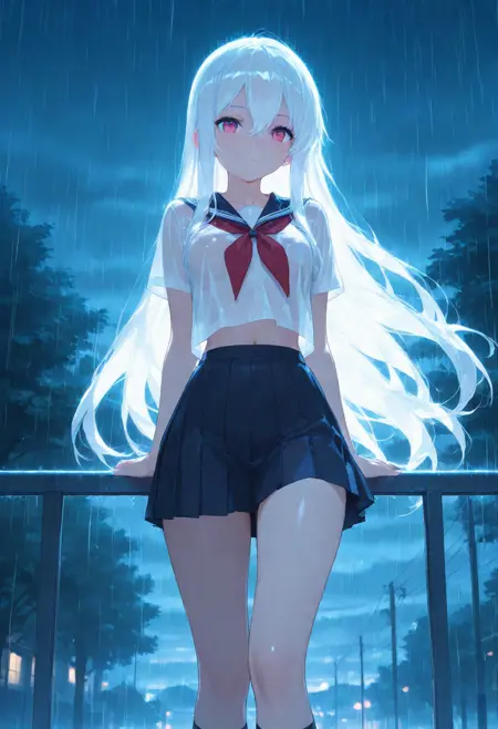 a glass feeling hair lora, kind of a "extract concept" from my checkpoint, with higher light/translucent cloth result, better with rain/backlighting