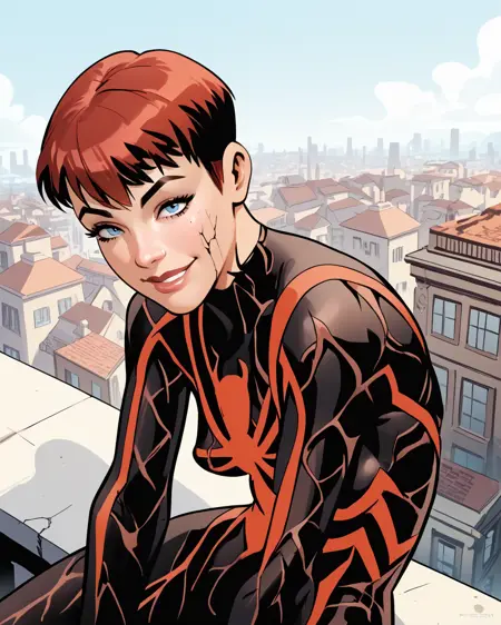 漫威漫画中的梅·帕克,又称毒液。这个版本的梅·帕克出自地球X宇宙,她与毒液共生体融合。