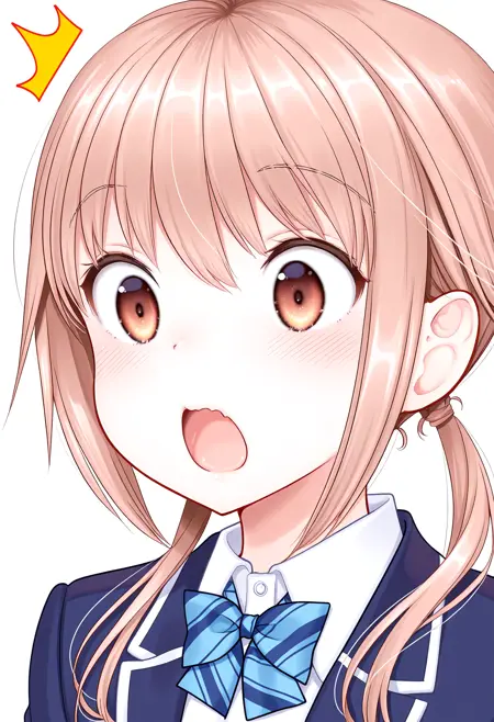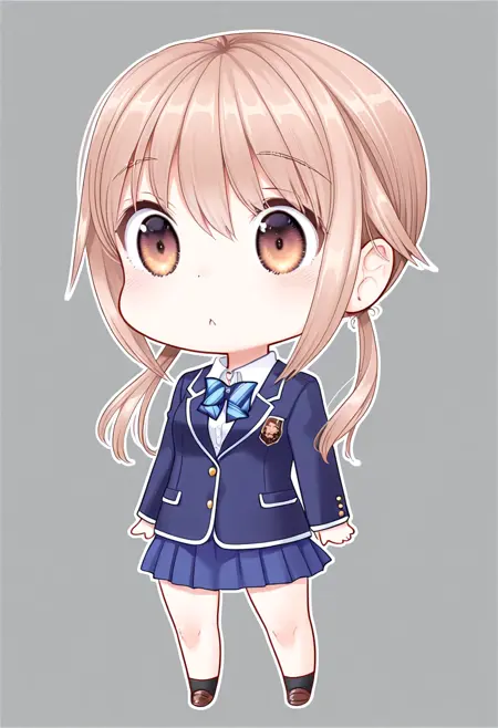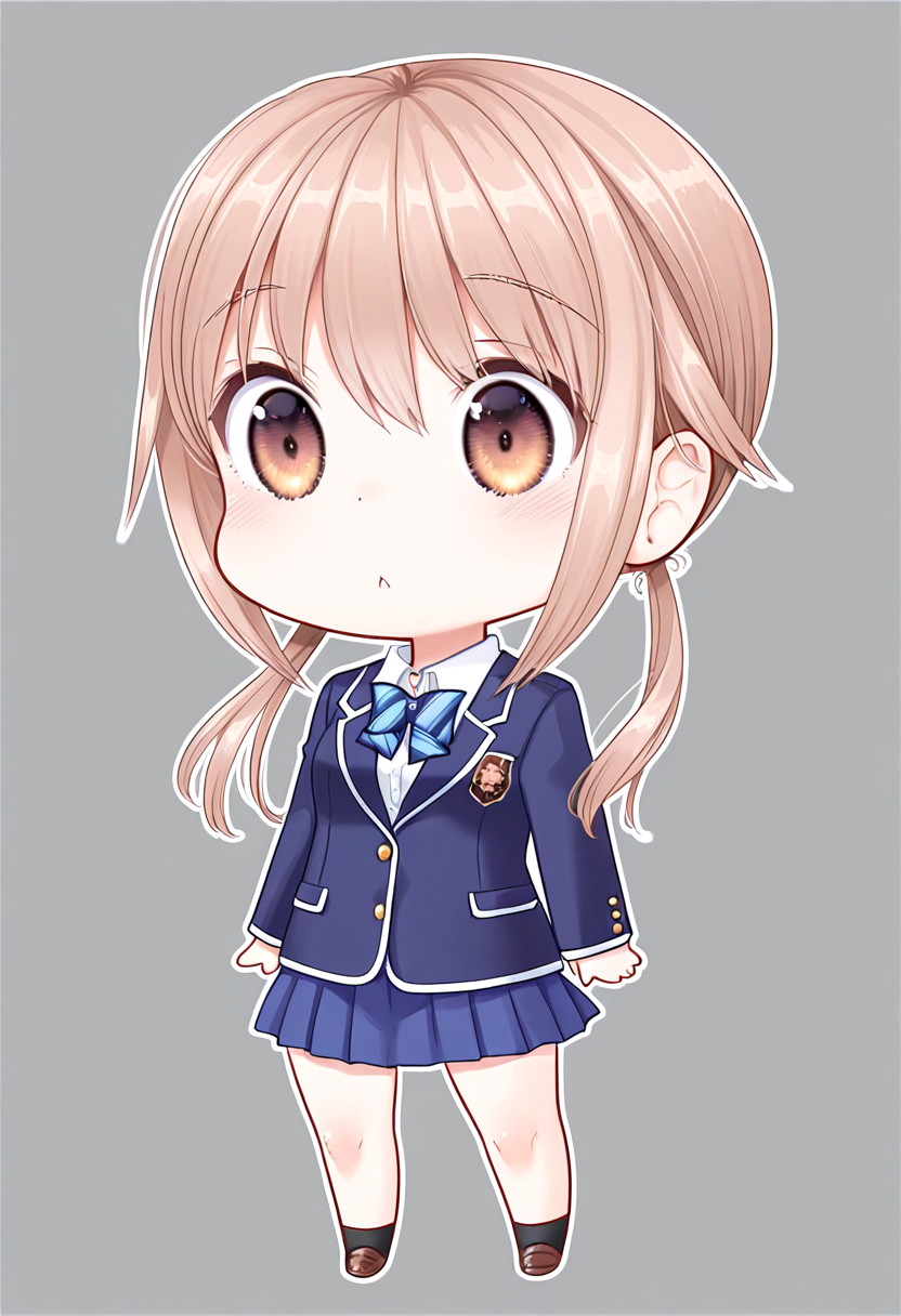 school uniform, blue jacket, blue skirt, striped blue bowtie,