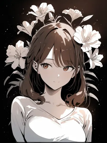 monochrome, black background, no humans, simple background, meticulous, still life, Rembrandt Lighting, greyscale, Focus on details, flower, gradient,
