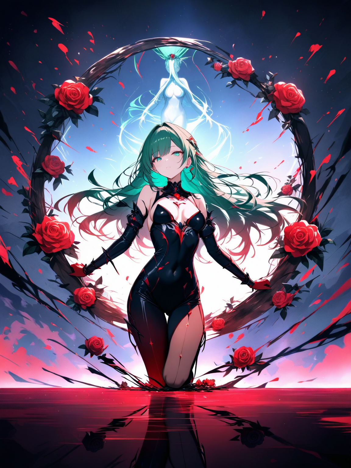 rose, black background, no humans, simple background, meticulous, monochrome, still life, greyscale, flower, gradient, red theme, blue theme, gradient background,