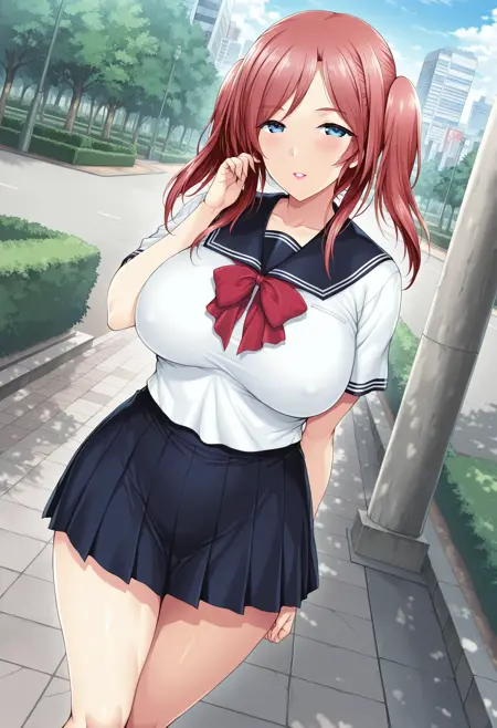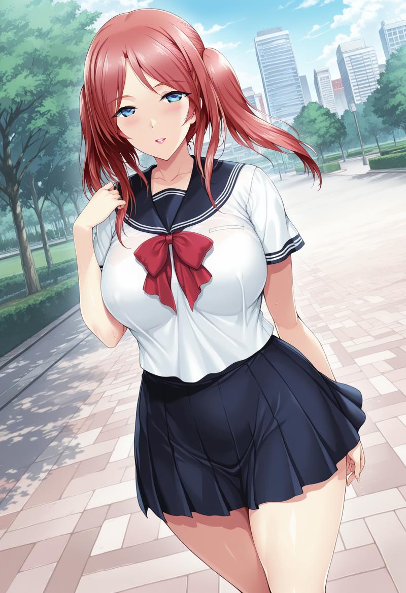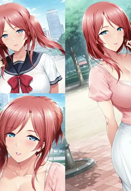 트리거 단어: c-arima, 성숙한 여성, 긴 머리, 빨간 머리, 파란 눈, 양쪽 옆으로 묶음,